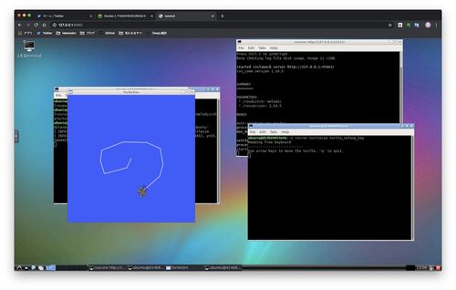 こちらの方法を試した。 https://qiita.com/karaage0703/items/957bdc7b4dabfc6639da ROSノード立てるたびにいちいちdocker execしなくていい分、こっちの方が楽なので、ROS学習はこれでやっていこう。 あとは本でROSの概念的な部分を学習中。ちょっと時間か…